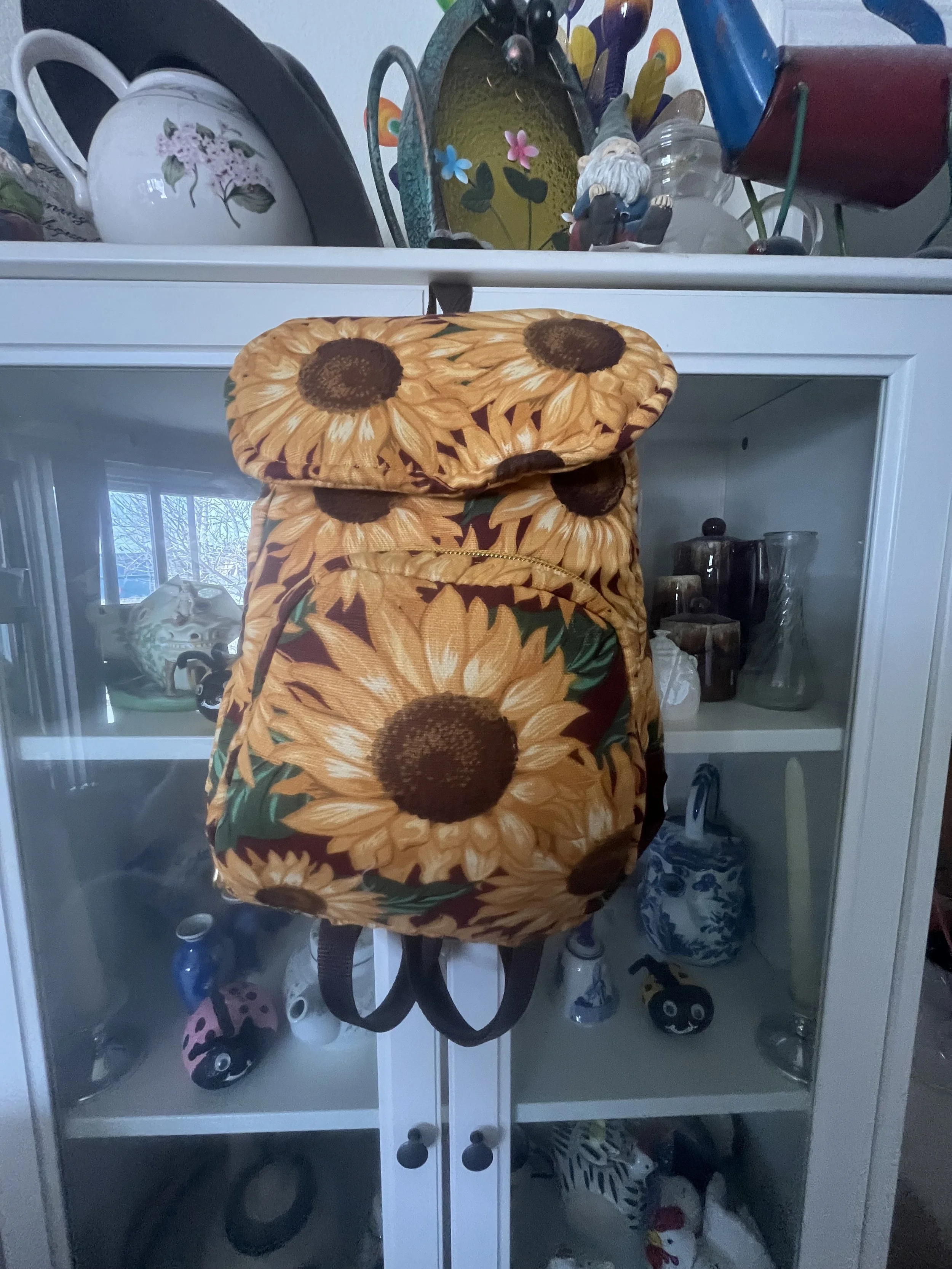 Faux Leather Mini Backpack features Embroidery on a large outer zipper pocket with a magnet snap lid. Adjustable straps. Inner body has double zip closure. Inside of bag has a zipper pocket, patch pocket, and eyeglass pocket. Height 12 inches and 3.5 inches wide. Body is 7 inches tapered to 9 inches.